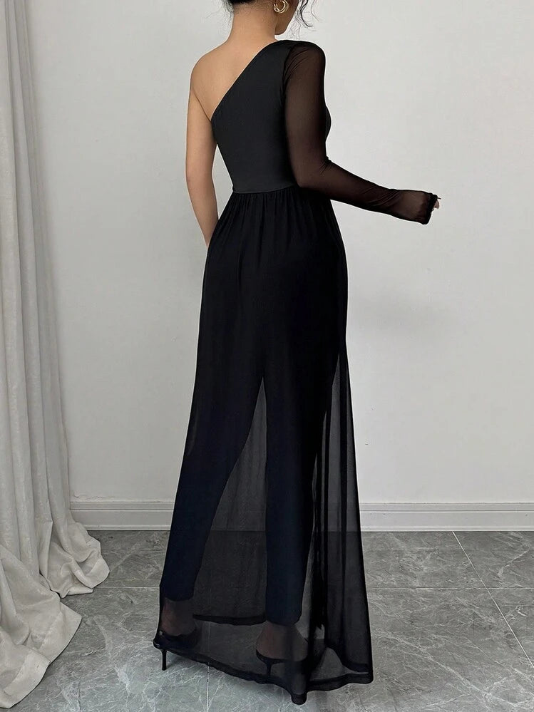 🧵 Corte de un solo hombro que estiliza el torso y resalta el porte.